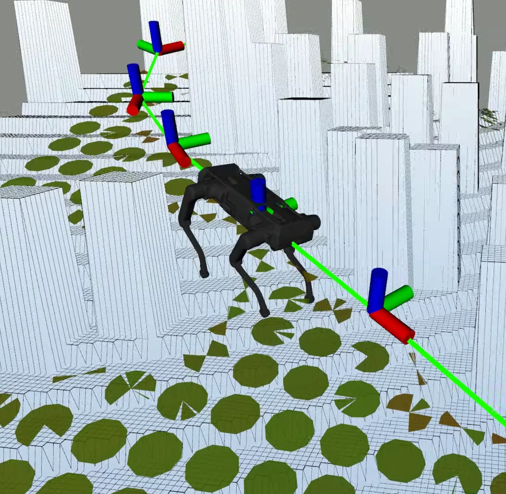 Path planner utilizing 3D Rotatable Area to efficiently generate collision-free and traversable paths for quadruped robots in confined spaces.